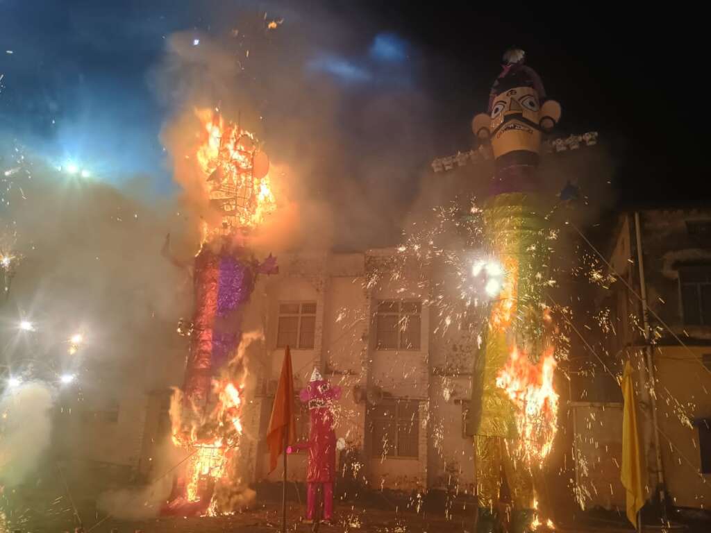 समापन दिवस पर रावण, मेघनाथ और कुंभकर्ण के विशाल पुतलों का दहन किया गया। जैसे ही भगवान श्रीराम का बाण रावण पर चला, पूरा आकाश रंग-बिरंगी आतिशबाजी से जगमगा उठा। बच्चों ने झूलों का आनंद लिया, तो बड़ों ने सांस्कृतिक प्रस्तुतियों और लोकगीतों का रसपान किया।