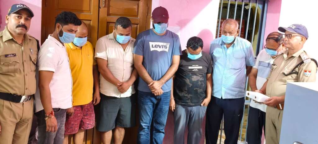 दौरान अभियान बलवन्त की खाली दुकान, कार रोड बिन्दुखत्ता से सार्वजनिक स्थान पर जुआ खेलते हुए कुल 07 व्यक्तियों को गिरफ्तार किया गया।