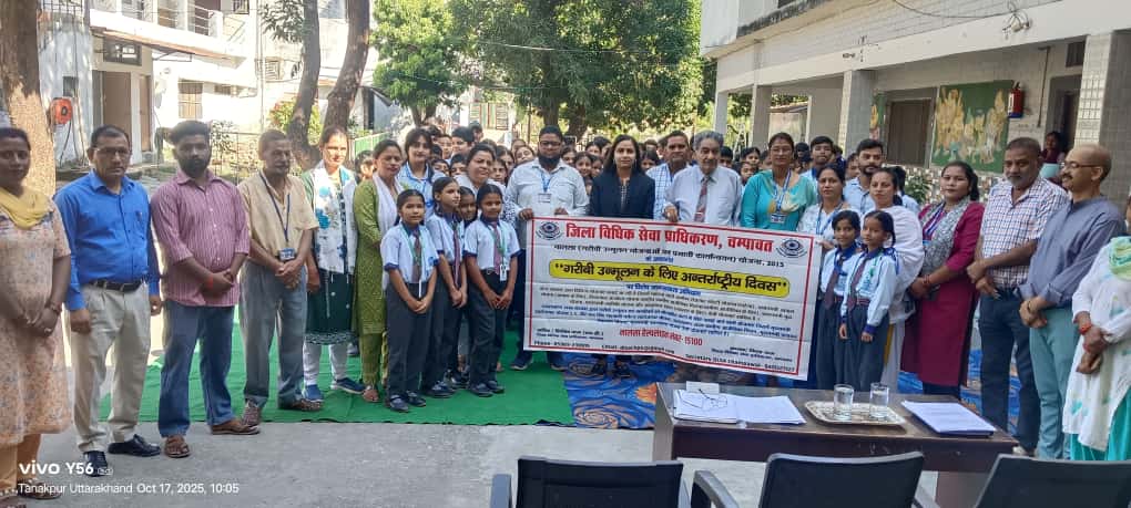 न्यायिक मजिस्ट्रेट सुश्री काजल रानी जी न्यायालय टनकपुर के नेतृत्व मे प्रबंधक श्री जे .बी सिंह जी की अध्यक्षता plv बिजेंद्र अग्रवाल के संचालन में गरीबी उन्मूलन अंतर्राष्ट्रीय दिवस के तहत साक्षरता जागरूकता शिविर का आयोजन किया गया