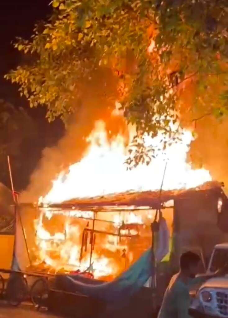घटना रात 10:00 बजे मेला क्षेत्र की दुकान पटाखे की चिंगारी से हुई स्वाहा आसपास के लोगों में आग लगने के बाद मची अफरा तफरी लोग पानी लेकर आग बुझाने का करते रहे प्रयास रहे परंतु अग्नि विकराल रूप धारण कर लिया।