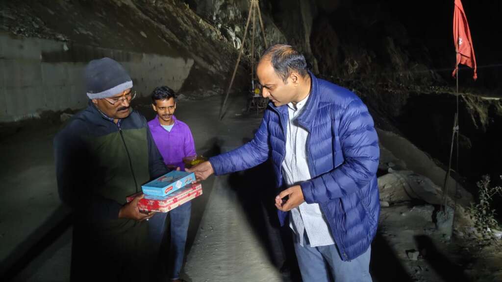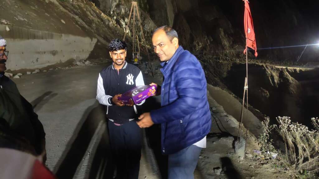चंपावत :दीपावली के पावन अवसर पर जिलाधिकारी मनीष कुमार मंगलवार देर रात स्वाला पहुंचे, जहाँ उन्होंने सड़क निर्माण एवं रखरखाव कार्य में लगातार जुटे JCB ऑपरेटरों और कर्मचारियों से मुलाकात की। उन्होंने मिठाई वितरित कर सभी को दीपावली की हार्दिक शुभकामनाएं दीं और उनके कार्य के प्रति आभार व्यक्त किया।
