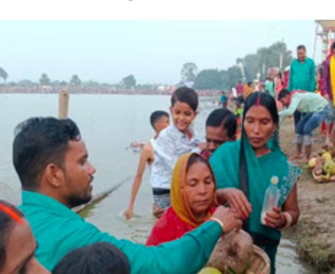 बांका में अस्ताचलगामी सूर्य को अर्घ्य देने उमड़ी श्रद्धालुओं की भीड़