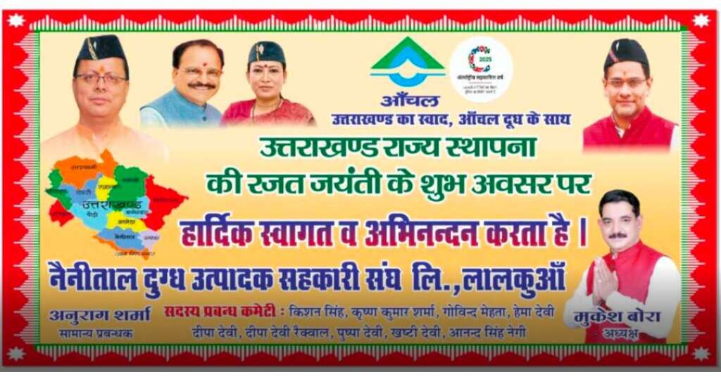 उक्त जानकारी देते हुए दुग्ध संघ के अध्यक्ष मुकेश बोरा ने बताया कि उत्तराखंड राज्य स्थापना की “रजत जयंती पर्व को राज्यव्यापी उत्सव के रूप में मनाने की तैयारी की गई है, जिससे दुग्ध विकास मंत्री सौरभ बहुगुणा की अगुवाई में आज 1 नवंबर से नौ दिवसीय कार्यक्रमों की रूपरेखा तैयार की गई है, जिसमें आँचल परिवार द्वारा सोबन सिंह जीना बेस चिकित्सालय एवं राजकीय महिला चिकित्सालय हल्द्वानी में मरीजों को निःशुल्क आंचल दूध वितरण किया जा रहा है। लालकुआं दुग्ध संघ प्रांगण में महिला दुग्ध उत्पादकों की गोष्ठी एवं निशुल्क स्वास्थ्य परीक्षण शिविर का आयोजन भी होगा। जिसमें सैकड़ो दुग्ध उत्पादकों एवं कर्मचारियों का निशुल्क स्वास्थ्य परीक्षण कराया जाएगा। उन्होंने बताया कि इसके बाद कल 2 नवम्बर को