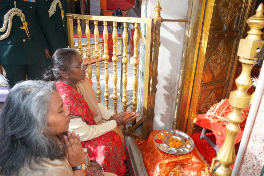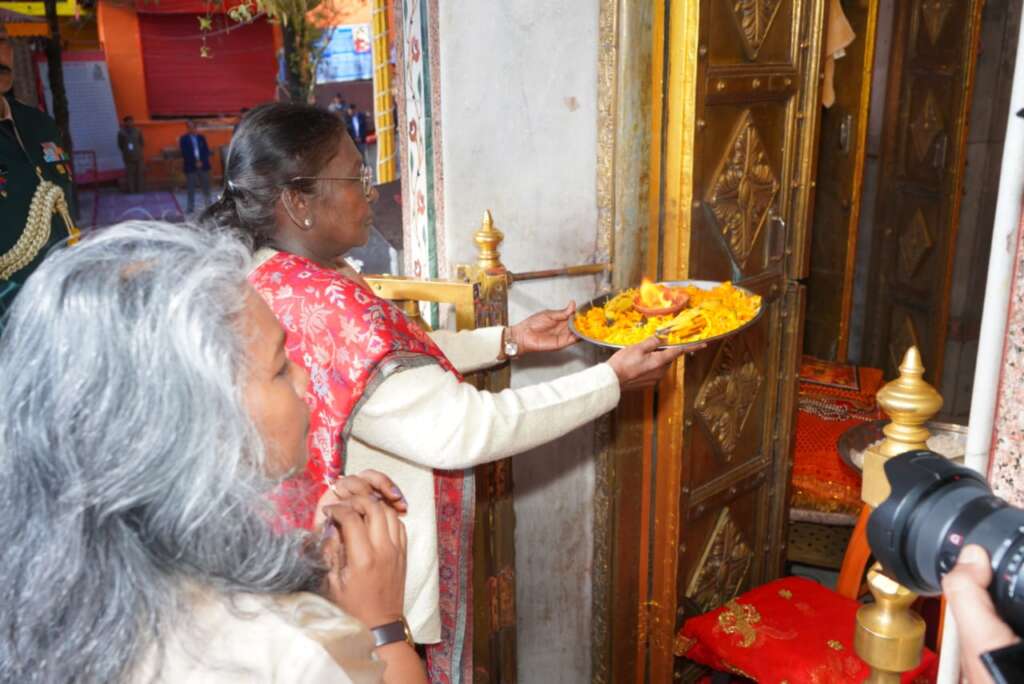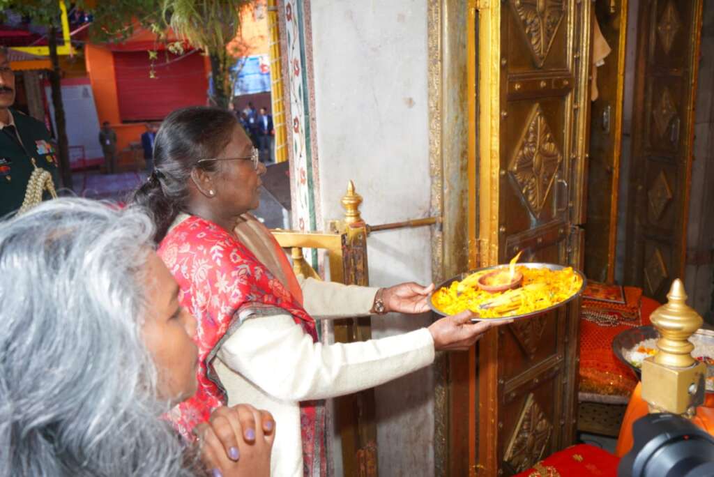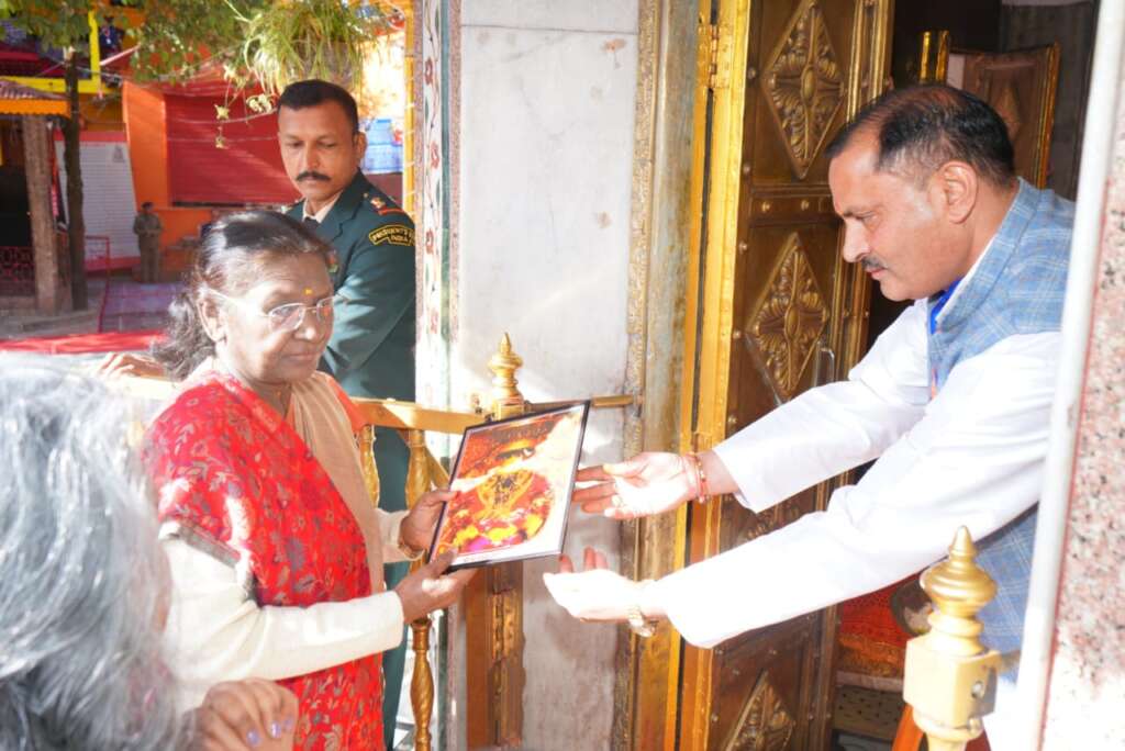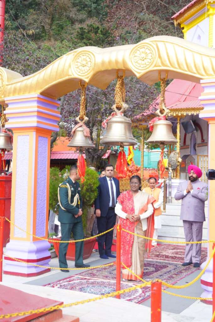 मंदिर आगमन पर मंदिर समिति के सदस्यों ने माननीय राष्ट्रपति श्रीमती मुर्मू का पुष्पगुच्छ भेंट कर स्वागत एवं अभिनंदन किया। इस दौरान राज्यपाल लेफ्टिनेंट जनरल(से.नि.) गुरमीत सिंह भी मौजूद रहे।