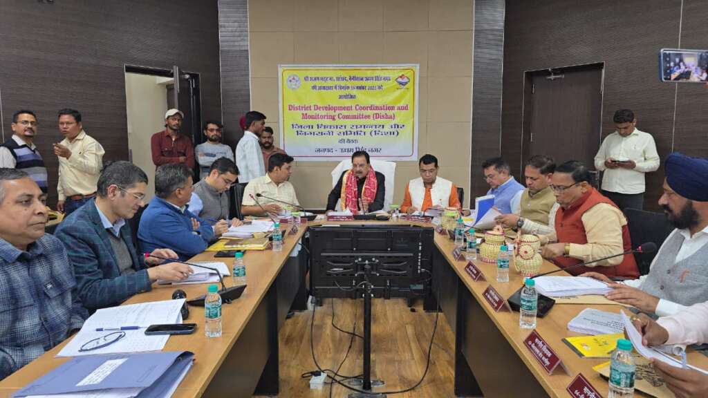 रूद्रपुर 18 नवम्बर lAshok gulati editor in chief lसांसद अजय भट्ट ने कलेक्ट्रेट सभागार में जिला विकास समन्वय एवं निगरानी समिति (दिशा) की बैठक लेते हुए केन्द्र सरकार की जन कल्याणकारी योजनाओं की गहनता से समीक्षा करते हुए कहा कि दिशा की बैठक की मॉनिट्रिंग प्रधानमंत्री जी द्वारा स्वयं की जाती है इसलिए केन्द्र सरकार की योजना कार्याे को गम्भीरता से लेते हुए कार्याे को समयबद्ध तरीके से पूर्ण करें। उन्होने कहा कि सभी अधिकारी पूरी तैयरियों के साथ बैठक में प्रतिभाग करें व आपसी समन्वय के साथ कार्य करते हुए जनकल्याणकारी योजनाओं को धरातल पर उतारें ताकि जनता को योजनाओं का वास्तविक लाभ मिल सके। उन्होने बैठक में परियोजना प्रबन्धक ब्रिडकुल के अनुपस्थित होने पर मुख्य विकास अधिकारी को स्पष्टीकरण मांगने के निर्देश दिये।