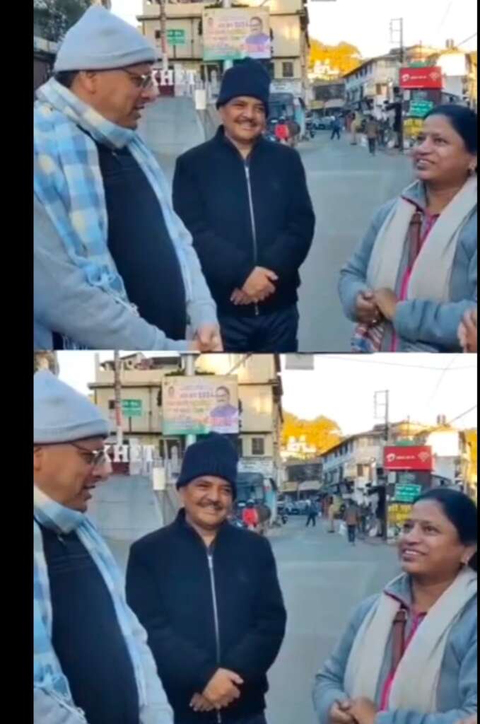 रानीखेत: युवा धाकड़ मुख्यमंत्री पुष्कर सिंह धामी को आज प्रातः नगर में ‘मॉर्निंग वॉक’ करते देखा पर्यटक एवं स्थानीय नागरिक आचार्य चकित रह गए, स्थानीय लोगों से चाय पर चर्चा की, एवं पर्यटकों से अपने अनुभव सांझा किया!✔️ ‘सीएम साहब’ आपसे मिलने के लिए तो हम रात को ही होटल में रुक गए, पर्यटक दंपति ने क्या कहा..! ✍️ Ashok Gulati editor in chief/संदीप पाठक ब्यूरो चीफ एक्सक्लूसिव रिपोर्ट /विवरण के मुताबिक मुख्यमंत्री पुष्कर सिंह धामी अल्मोड़ा जनपद के दो दिवसीय भ्रमण पर रानीखेत पहुंचे, आज सुबह-सुबह मॉर्निंग वॉक पर नगर में निकले, मुख्यमंत्री को देखकर नागरिक हैरान हो गए, उनका कहना था कि इतिहास में पहली बार कोई मुख्यमंत्री इस ठंड में नगर प्रातःमें भ्रमण पर निकले हैं, और नागरिकों से सीधा संवाद कर रहे हैं, दिल्ली से आए एक पर्यटक दंपति ने मजेदार बात बताई ,’सीएम साहब’ आप इतने लोकप्रिय हैं आपसे मिलने एवं आपको देखने के लिए हम रात को होटल में रुक गए, जबकि हम दिल्ली जा रहे थे, मुख्यमंत्री से मिलकर दंपति का खुशी का ठिकाना नहीं था, दिल्ली से आए पर्यटकों से मुख्यमंत्री ने उत्तराखंड शीतकालीन यात्रा को लेकर उनके अनुभव सांझा किया, उन्होंने उनसे फीडबैक भी लिया, तत्पश्चात मुख्यमंत्री पुष्कर सिंह धामी ने स्थानीय लोगों से चाय पर चर्चा कर जन-जन की सरकार. ‘जन-जन के द्वार’अभियान का फीडबैक भी लिया, जनता जनार्दन ने अभियान की सराहना करते हुए कहा इसे जनहित में एक प्रभावी कदम बताया, और सरकार का आभार व्यक्त किया, जागरूक नागरिकों का कहना था इस अभियान के माध्यम से शासन सीधा जनता से संवाद स्थापित कर सकता है , जिससे उनकी समस्या का समाधान आसानी से हो जाएगा|तत्पश्चात मुख्यमंत्री पुष्कर सिंह धामी ने रानीखेत गांधी चौक पर स्थित सेल्फी पॉइंट पर सेल्फी ली|बरहाल मुख्यमंत्री का रानीखेत दौरा जहां विकास की कई कल्याणकारी योजनाएं की घोषणा की, वही बाहर से टूरिस्ट एवं स्थानीय जनता का दिल जीत लिया|