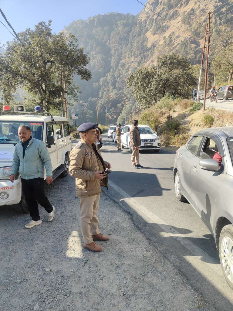 ✔️ सैलानियों की सुरक्षा तथा निर्बाध यातायात व्यवस्था के दृष्टिगत कड़े पुलिस प्रबन्ध किए गए है। पुलिस द्वारा जनपद की सीमा में ही समस्त वाहनों की चैकिंग की जा रही है।