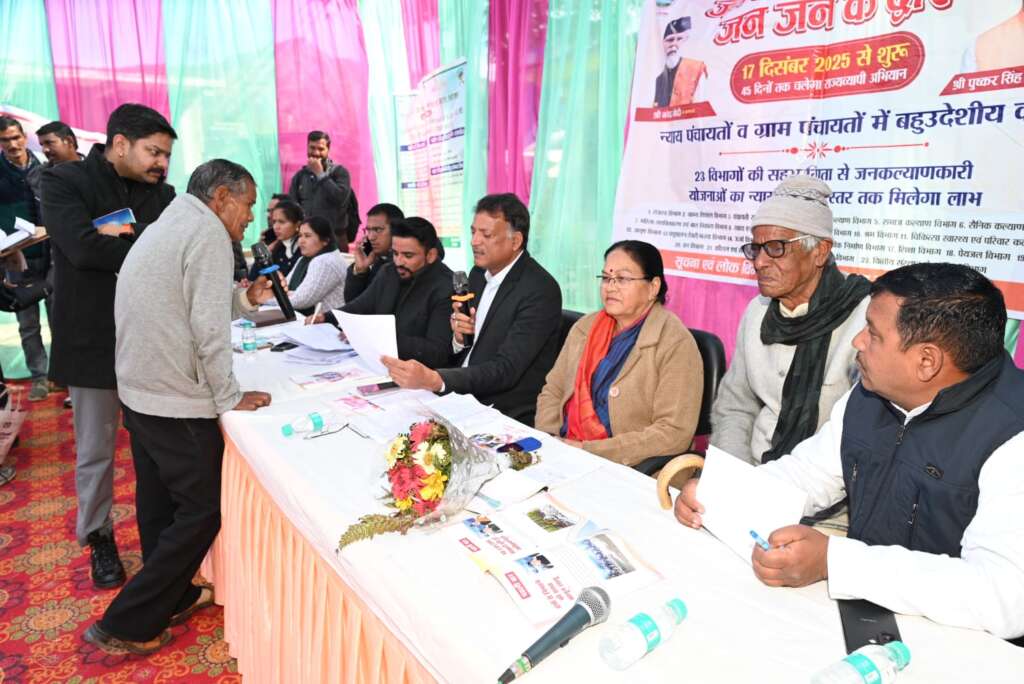 शिविर में ब्लॉक प्रमुख दीपक कुमार, जिला पंचायत सदस्य निधि जोशी,क्षेत्र पंचायत सदस्य चंपा रैकवाल, गीता बिष्ट सहित क्षेत्रीय जनप्रतिनिधि गणमान्य नागरिक, क्षेत्रीय जनता, विभागों के अधिकारी, कर्मचारी उपस्थित रहे।