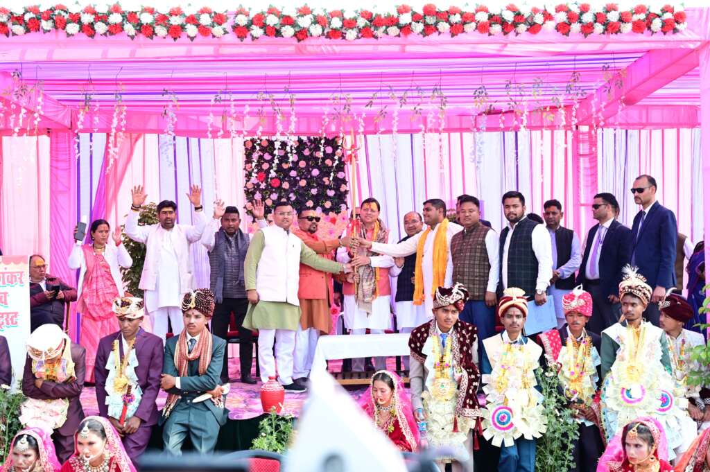 मुख्यमंत्री धामी ने सामूहिक विवाह के आयोजन से जुड़े व्यक्तियों व संस्थाओं बधाई व धन्यवाद दिया। उन्होंने कहा कि विवाह वर-वधु को ही नहीं अपितु दो घरों/परिवारों को जोड़ता है। इस मांगलिक कार्य सम्मिलित होने अवसर मिला यह मेरे लिए गर्व की बात है। उन्होंने नव वर-वधु को आशीर्वाद देकर उनके उज्जवल भविष्य की कामना की।