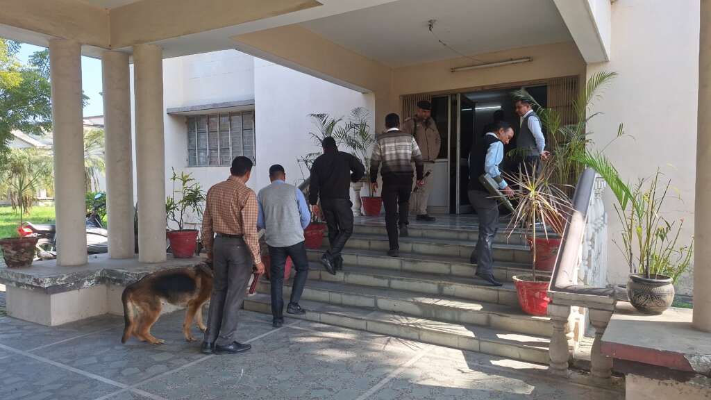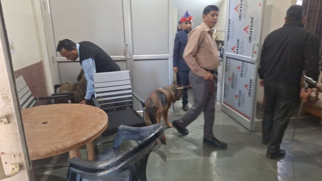 संयुक्त सर्च ऑपरेशन: चेकिंग अभियान में बी०डी०एस० (Bomb Disposal Squad) और डॉग स्क्वाड की टीमों ने पूरे न्यायालय परिसर के कोने-कोने की बारीकी से तलाशी ली।