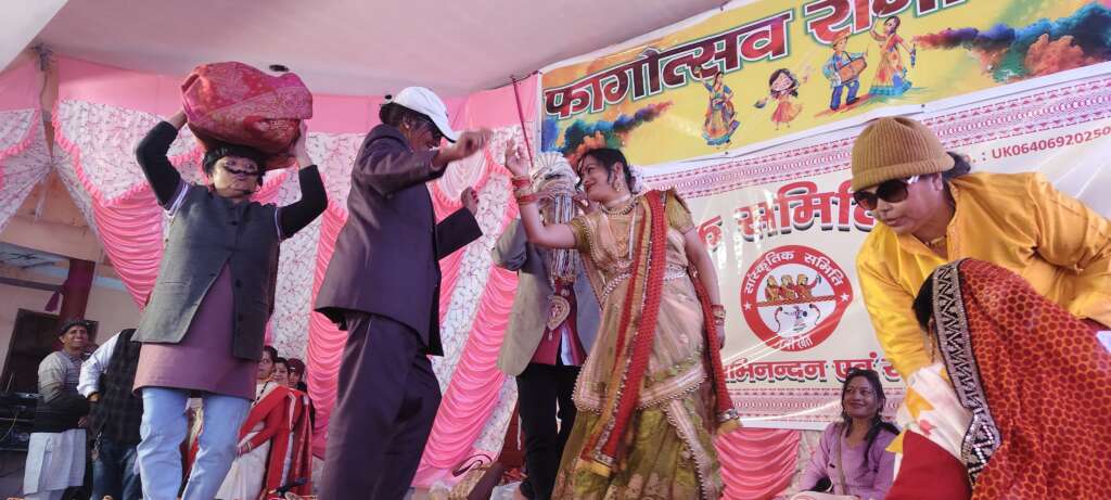 कार्यक्रम में महिला टीमों ने होली गायन और स्वांग अभिनय की मनमोहक प्रस्तुति दी ।स्वांग अभिनय में हास्य व्यंग के साथ सामाजिक समस्याओं को उठाते हुए सामाजिक राजनीतिक व्यवस्था पर सवाल खड़े किए।