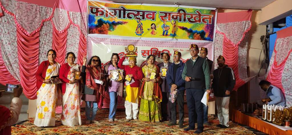 रानीखेत – सांस्कृतिक समिति द्वारा आयोजित फागोत्सव में इस बार भी नगर व ग्रामीण क्षेत्र की बीस महिला टीमों के साथ अल्मोडा़, नैनीताल व भवाली की महिला टीमों ने भरपूर उमंग और उत्साह के साथ प्रतिभाग किया।फागोत्सव के तहत महिला टोलियों ने नगर में भव्य शोभायात्रा निकाली तदुपरांत शिव मंदिर परिसर में होली स्वांग प्रतियोगिता में प्रतिभाग कर खूब हास्य व्यंग बिखेरा।