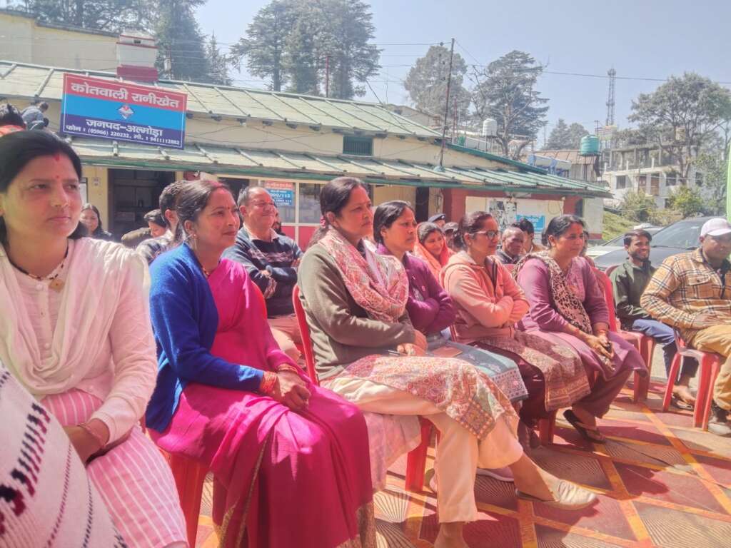 रानीखेत,:आज कोतावली मे थाना दिवस के उपलक्ष मे एक बैठक का आयोजन् किया गया।जिसमे अपर पुलिस अधीक्षक हरबंस सिंह एवं कोतवाल भुवन चनद्र जोशी ने जनता के विचारों को सुना ,सुरक्षा एवं महिला सुरक्षा के बारे मे जानकारी दी, उपनिरीक्षक हेमा कार्क्री ने महिलाओ को उनके अधिकारों एवं सुरक्षा के बारे मे बताया साथ ही अंतराष्ट्रीय महिला दिवश की शुभकामनाए दी।