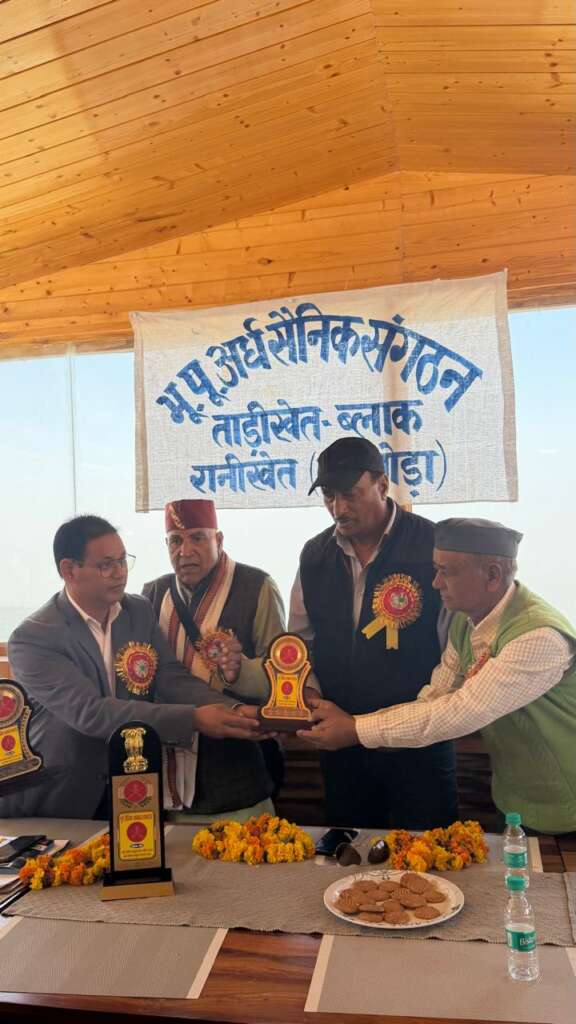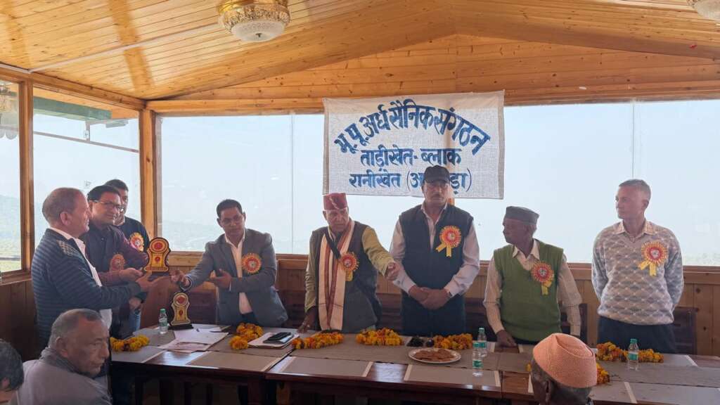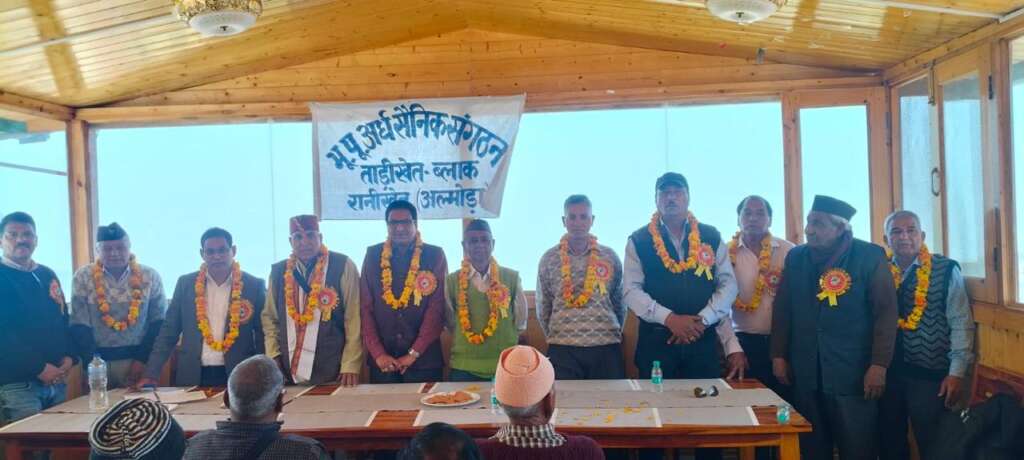 ताड़ीखेत:( रनीखेत )आज मुख्य अतिथि के तौर पर पूर्व ब्लॉक प्रमुख हीरा सिंह रावत की उपस्थिति में पूर्व भूतपूर्व अर्ध सैनिक संगठन ताड़ीखेत का गठन किया गया। जिसमें सर्व सहमति से अध्यक्ष पद सुनील चंद बिष्ट, उपाध्यक्ष पद पर मोहन सिंह बिष्ट, सचिव पद पर जीवन सिंह, कोषाध्यक्ष पद पर राजेंद्र कुमार पांडे, संरक्षक डी के पांडे, उपसंरक्षक हीरा सिंह जी को आज सर्व सहमति से चुना गया। जिसकी अध्यक्षता तारा दत्त शर्मा, जिला अध्यक्ष अल्मोड़ा के द्वारा किया गया। जिसका संचालन श्री हीरा सिंह रावत सेवा निवृत्त एसएसबी द्वारा किया गया। जिसमें आज सर्व सहमति से केंद्रीय कल्याण बोर्ड,राज्य कल्याण बोर्ड तथा जिला कल्याण बोर्ड की माँग उठील तथा पुरानी ओल्ड पेंशन स्कीम लागू करने की मांग उठी। झंडा दिवस बनाने की मांग उठी। सीजीएचएस सभी जिलों में खोलने की मांग उठी। भूतपूर्व अर्ध सैनिक संगठन ने पूर्व ब्लॉक प्रमुख हीरा रावत का माल्यार्पण कर बार बार कई वर्षों से सहयोग करने पर आभार प्रकट किया। पूर्व ब्लॉक प्रमुख हीरा सिंह रावत ने सभी नवनिर्वाचित पदाधिकारियों और सभी भूतपूर्व सैनिकों को स्मृतिचिन देकर सम्मानित किया जिसमें तारा दत्त शर्मा, जिला अध्यक्ष अल्मोड़ाc a p s , उपस्थित रहे। , श्री किशोर चंद उपाध्यक्ष रहे। जगत सिंह अध्यक्ष दोराहाट, श्री हरि सिंह नेगी जी, हीरा सिंह रावत जी, नारायण सिंह रावत जी, हर सिंह नेगी ,अनि राम जी, अंशुल सिंह ,महेंद्र रावत और जिला व्यापार मंडल अध्यक्ष यतीश रौतेला उपस्थित रहे।