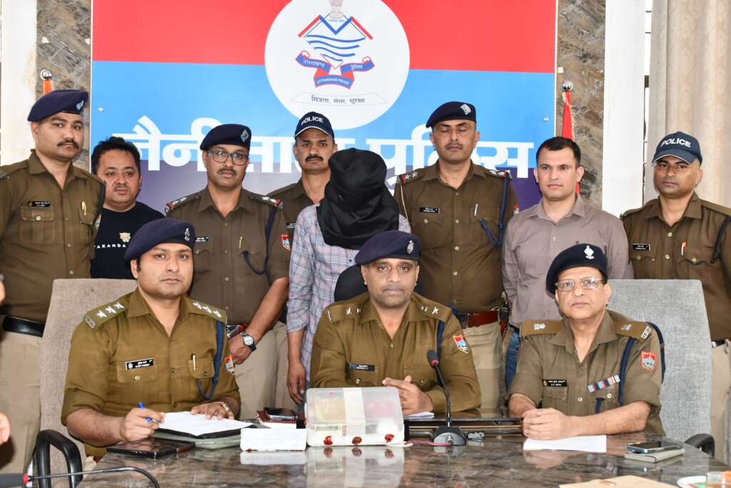 पुलिस टीम को हल्दीखाल जाने वाले रास्ते पर एक संदिग्ध व्यक्ति दिखाई दिया, जिसे पुलिस टीम द्वारा घेराबंदी कर आवश्यक बल प्रयोग करते हुए पकड़ लिया गया। पूछताछ में उसने अपना नाम गौरव कुमार (उम्र 25 वर्ष) बताया। उसके पास मौजूद थैले की तलाशी लेने पर चोरी किए गए पीली धातु के आभूषण व नगदी बरामद हुई, जिसके बाद अभियुक्त को गिरफ्तार कर आवश्यक कार्यवाही की गई।एसएसपी नैनीताल ने पुलिस टीम के उत्साहवर्धन हेतु 2000 नगद इनाम से पुरुस्कृत करने की घोषणा कीl