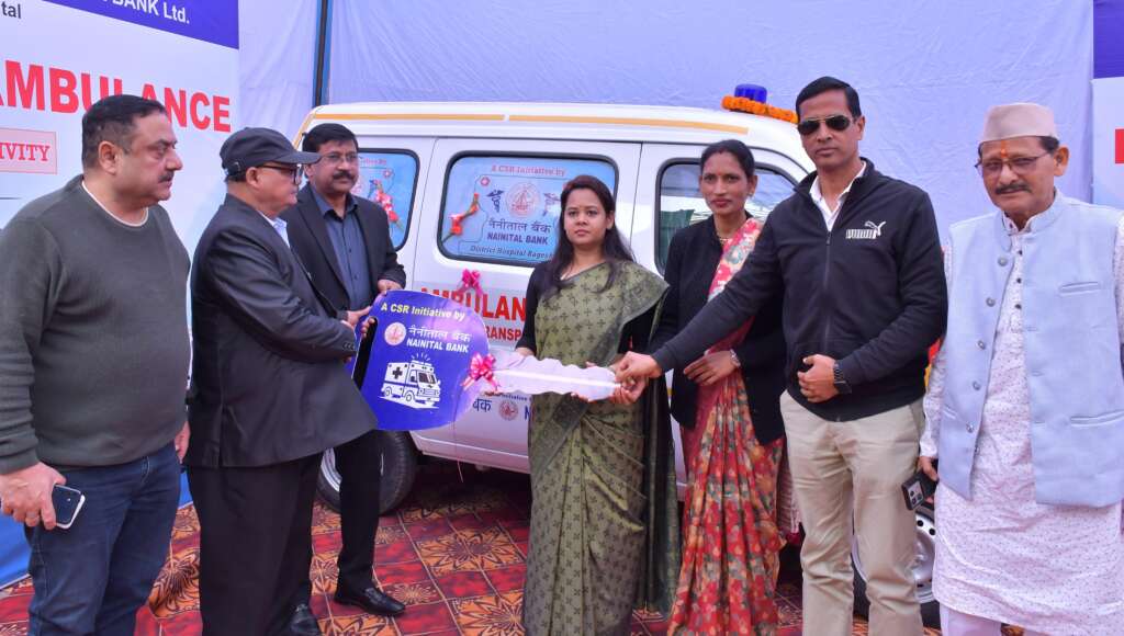 बागेश्वर :जनपद में स्वास्थ्य सुविधाओं को मजबूत बनाने की दिशा में एक महत्वपूर्ण कदम उठाते हुए द नैनीताल बैंक लिमिटेड ने अपने कॉर्पोरेट सोशल रिस्पॉन्सिबिलिटी फंड के अंतर्गत जिला चिकित्सालय बागेश्वर को एक अत्याधुनिक एम्बुलेंस प्रदान की। मंगलवार को जिलाधिकारी आकांक्षा कोंडे ने जिला अस्पताल परिसर से एम्बुलेंस को हरी झंडी दिखाकर रवाना किया।