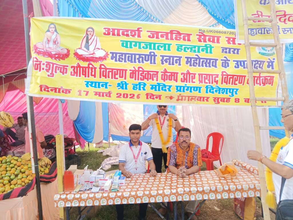 दिनेशपुर :आदर्श जनहित सेवा संस्था हल्द्वानी की ओर से आज के श्री हरि मंदिर प्रांगण में लगने वाले महाबरूनी महोत्सव के उपलक्ष्य में भंडारे हेतु दाल,चावल सब्जी मसाला आदि खरीद कर दिया गया,