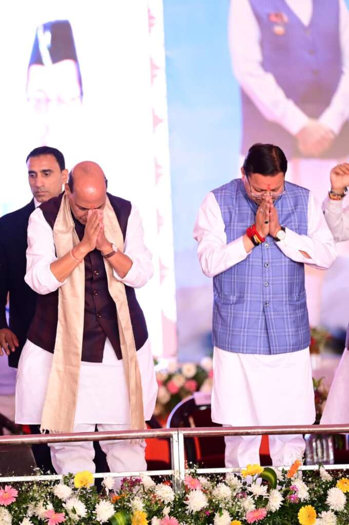 रक्षा मंत्री ने अपने संबोधन में उत्तराखंड के शहीदों को नमन करते हुए कहा कि यह देवभूमि आस्था, अध्यात्म, ऋषि-मुनियों और तपस्वियों की भूमि रही है। यहां के लोग सौम्य, परिश्रमी और राष्ट्रभक्ति से ओतप्रोत हैं। उन्होंने कहा कि मुख्यमंत्री धामी के नेतृत्व में राज्य निरंतर विकास के पथ पर अग्रसर है और आज देश के अग्रणी राज्यों में अपनी मजबूत पहचान बना रहा है।