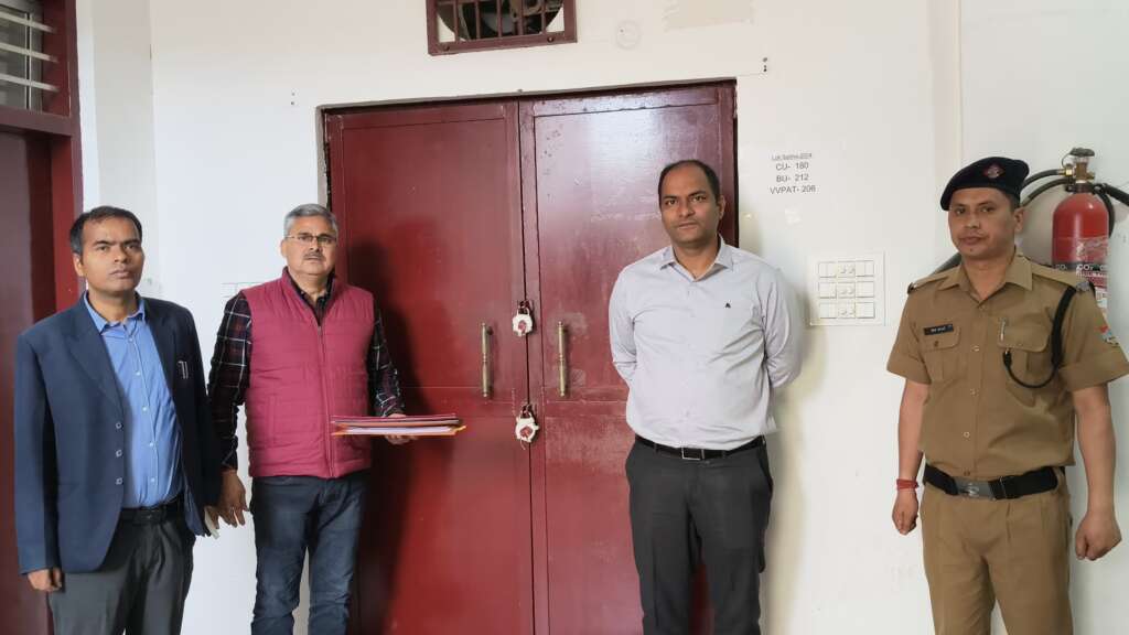 चंपावत : जिलाधिकारी एवं जिला निर्वाचन अधिकारी श्री मनीष कुमार ने गुरूवार को कलक्ट्रेट परिसर स्थित जिला निर्वाचन कार्यालय भवन में स्थापित ईवीएम एवं वीवीपैट वेयरहाउस का मासिक निरीक्षण कर सुरक्षा व्यवस्थाओं का विस्तृत जायजा लिया।