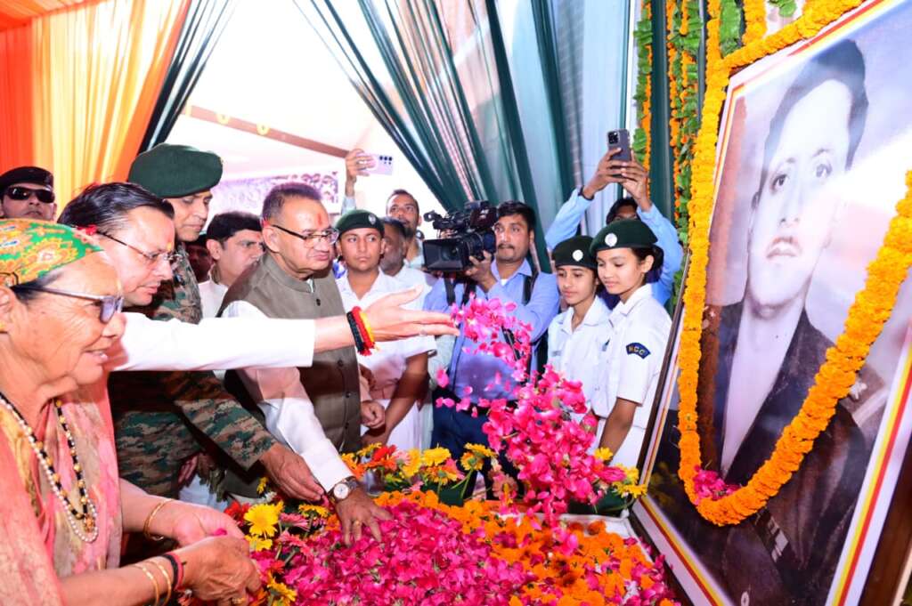 मुख्यमंत्री ने कहा कि प्रदेश के वीर बलिदानियों की स्मृति को अक्षुण्ण रखने के लिए हम देहरादून में भव्य सैन्य धाम का निर्माण भी करा रहे हैं, जो आने वाली पीढ़ियों को राष्ट्रभक्ति की प्रेरणा देता रहेगा। उन्होंने कहा कि हमनें बलिदानियों के परिवार के एक सदस्य को सरकारी नौकरी में समायोजित करने का भी निर्णय लिया है और सरकारी नौकरी के लिए आवेदन करने की अवधि को भी 2 वर्ष से बढ़ाकर 5 वर्ष कर दिया है। हम प्रदेश में बलिदानियों के आश्रितों को नौकरी पूर्व प्रशिक्षण तथा पुत्री विवाह अनुदान जैसी योजनाएँ भी संचालित कर रहे हैं। उन्होंने कहा कि राज्य में वीरता पुरस्कार प्राप्त सैनिकों और पूर्व सैनिकों हेतु सरकारी बसों में यात्रा की निःशुल्क व्यवस्था करने के साथ-साथ सेवारत व पूर्व सैनिकों हेतु 25 लाख रुपए मूल्य की स्थायी सम्पत्ति की खरीद पर स्टाम्प ड्यूटी में 25 प्रतिशत की छूट भी प्रदान की जा रही है। उन्होंने कहा कि उत्तराखंड केवल देवभूमि ही नहीं, बल्कि वीरभूमि भी है। यहाँ की पावन माटी में जन्मे वीर सपूतों ने माँ भारती के लिए अपना सर्वस्व न्योछावर किया है। उन्होंने कहा कि ये मेरा सौभाग्य है कि मैं, एक सैनिक का पुत्र हूँ, मैं, सैनिक परिवारों के त्याग, संस्कार और संघर्ष को बहुत करीब से समझता हूँ। इसलिए मैं, आप सभी को ये विश्वास दिलाता हूँ, हमारी सरकार सैनिकों को राष्ट्र का सर्वोच्च नायक मानते हुए, उनके सम्मान और उनके परिवारों के कल्याण के अपने “विकल्प रहित संकल्प” को पूर्ण करने के लिए इसी प्रकार निरंतर कार्य करती रहेगी।