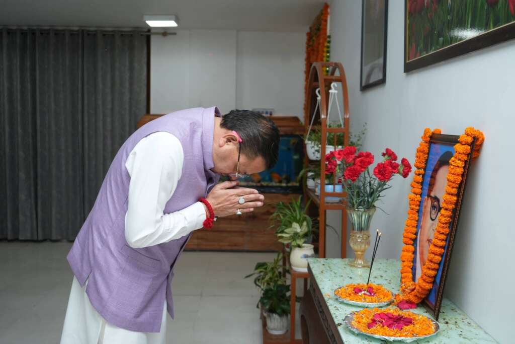 देहरादून : मुख्यमंत्री पुष्कर सिंह धामी ने भारतीय संविधान के निर्माता एवं ‘भारत रत्न’ बाबा साहेब भीमराव अंबेडकर की जयंती के अवसर मुख्यमंत्री आवास में उनके चित्र पर पुष्प अर्पित कर उनका भावपूर्ण स्मरण किया ।
