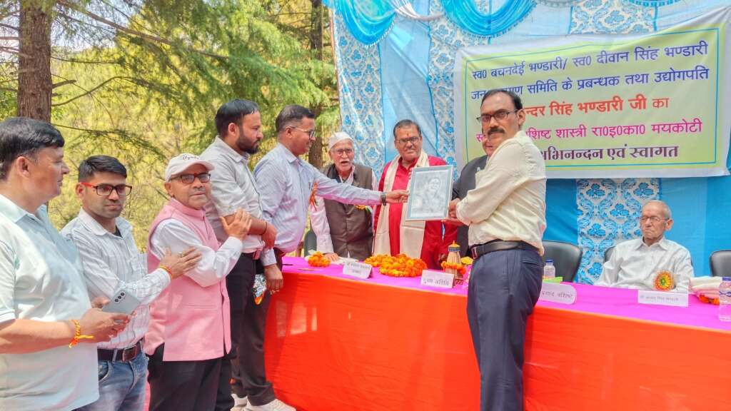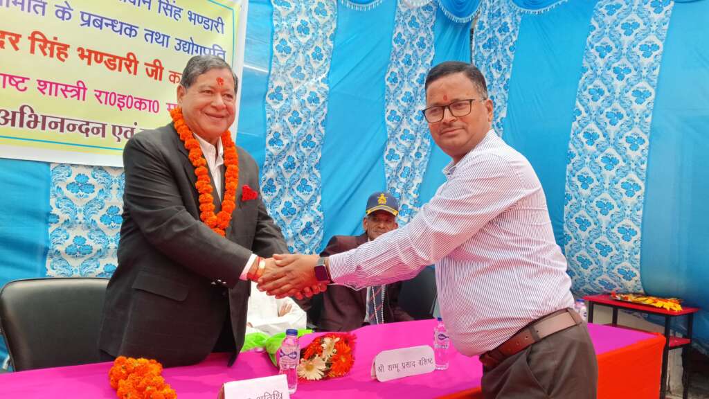 रुद्रप्रयाग : तल्लानागपुर क्षेत्र के स्व०श्याम वशिष्ठ शास्त्री राजकीय इंटर कॉलेज मयकोटी में प्रधानाचार्य वीरेंद्र सिंह भंडारी की अध्यक्षता में स्वागत एवं अभिनंदन कार्यक्रम आयोजित किया गया..