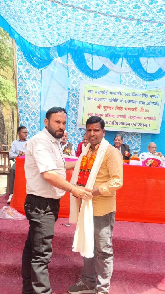 स्व०बच्चन देई भंडारी/स्व०दिवान सिंह भंडारी जन कल्याण समिति के प्रबंधक व उद्योगपति सुन्दर सिंह भंडारी ने भारी संख्या में पहुंचे अभिभावक, जनप्रतिनिधीगणों,शिक्षक गणोंका हार्दिक आभार जताते हुए कहा कि शिक्षा मंदिर ही राज्य,देश का भविष्य है। विभिन्न प्रतिभाओं स्पर्धा में बच्चे निकल कर माता-पिता शिक्षक गणों और क्षेत्र का नाम रोशन कर रहे हैं। यहां पर भी सभी छात्र-छात्राओं आप लोग भी पढ़े लिखे और किसी ना किसी प्रतिभा में देश का नाम रोशन करें।उन्होंने कहा कि मैं कोई राजनीति से नहीं जुड़ा हूं। बल्कि समाज सेवा करना ही मेरा एक उद्देश्य है। मानव धर्म है,समौण के रूप में मैं अपनी तरफ से छात्र छात्राओं को एक छोटी से भेंट लाया हूं।
